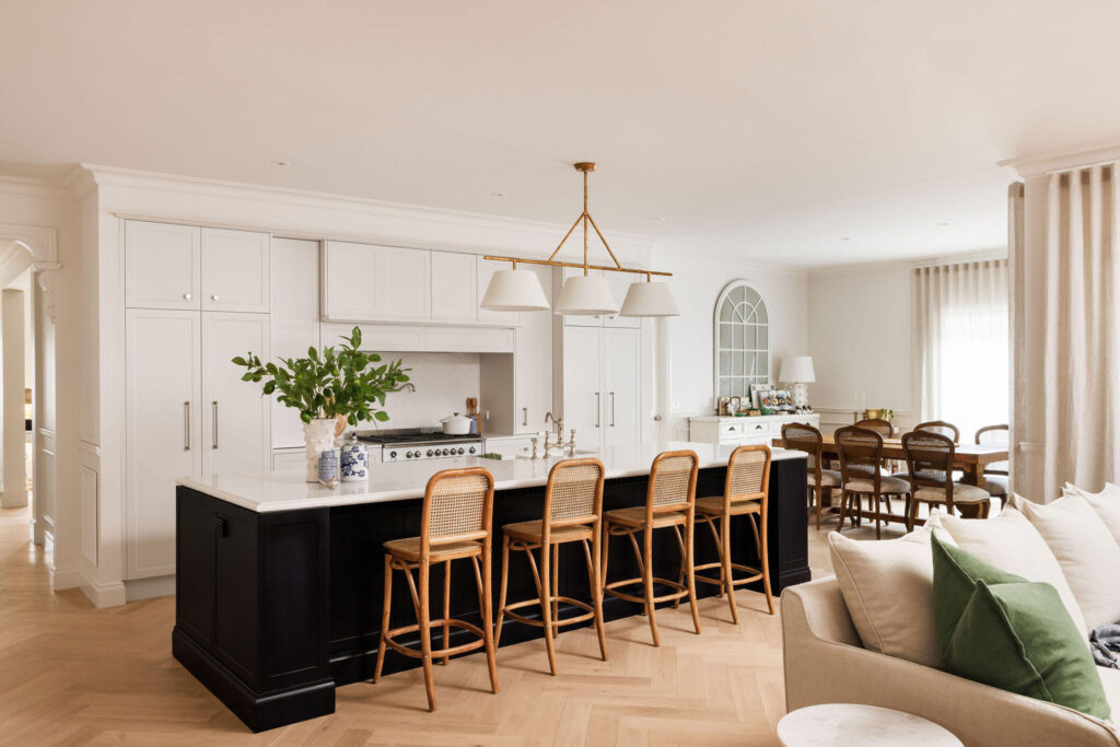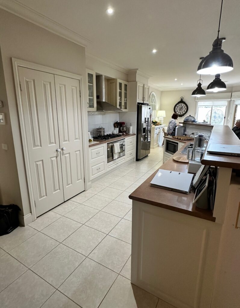Our clients came to Toni + Co wanting a “freshen up” – but what they really needed was clarity on how to do that – where to start, what was going to create the most impact. The home had great bones, beautiful furniture, and loads of potential, but it felt a little disconnected and dated, their last update was 20 years ago. The main focus of the brief? Create their dream kitchen inspired by their deep love of all things French, specifically, the lady of the house longed for a ‘Modern French Provincial’ style kitchen that felt elegant, warm and was practical. The dining room, lounge, hallway, master bedroom and ‘sitting room’ all required a re-vamp also.